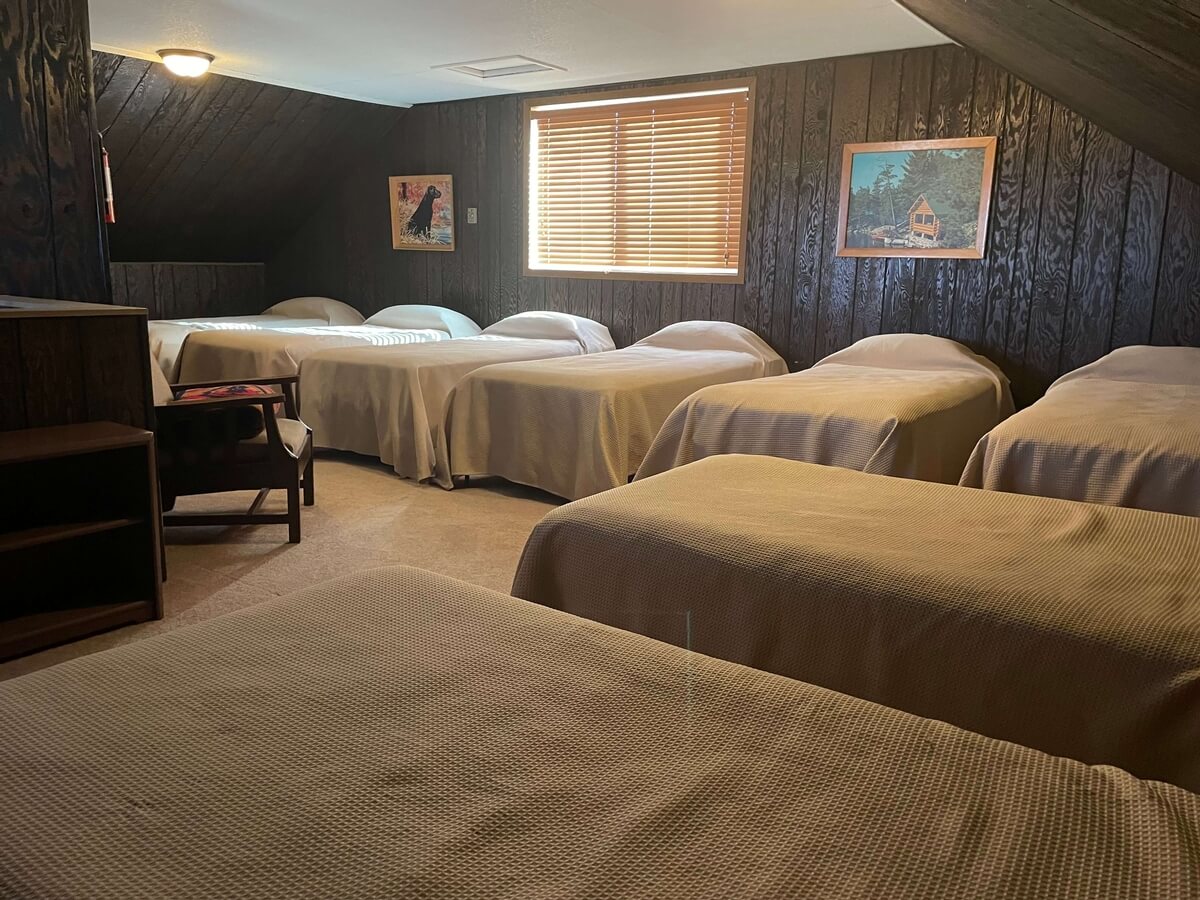 The Lodge will comfortably sleep up to 14 people with its full bedrooms and upstairs loft.